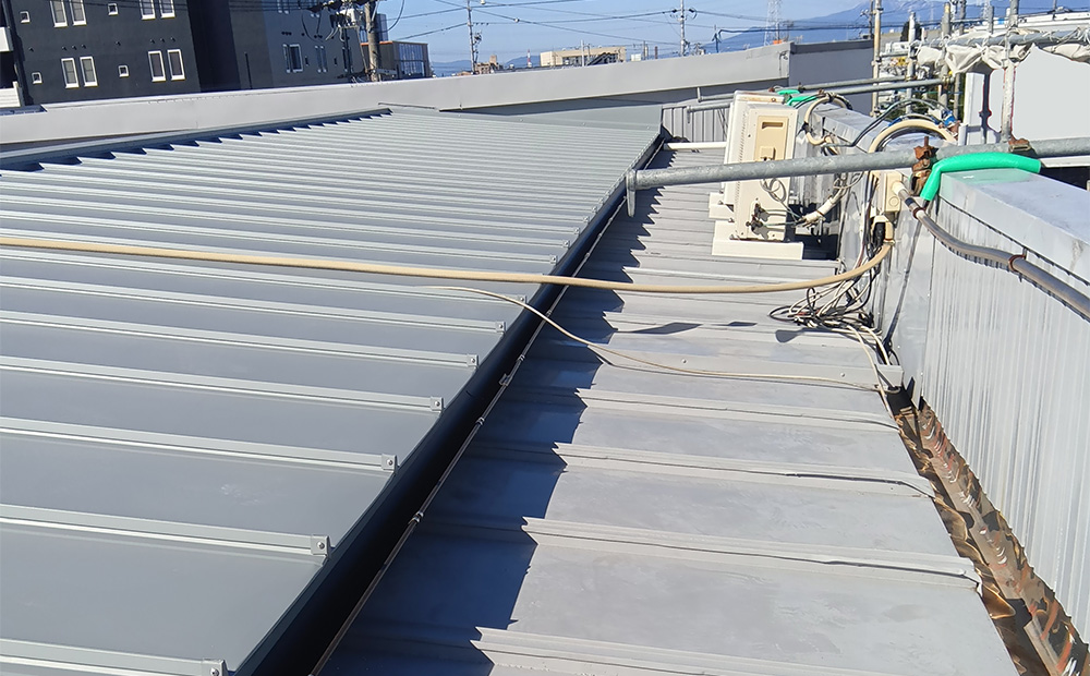 下からは見えない施工ではありますが、この工法により既存樋への負担が大幅に軽減され、大雨時でも安心できる屋根へと改善することができました。